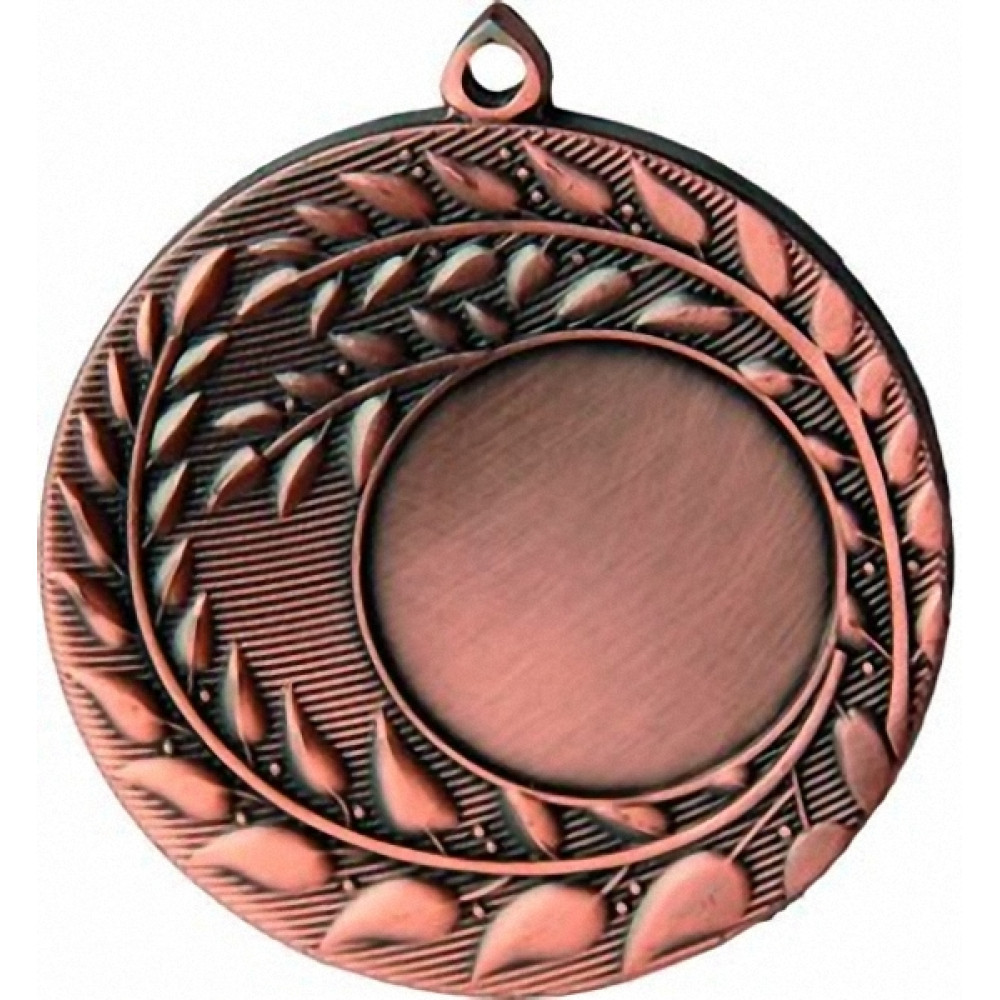 Медаль круглая металлическая. Диаметр 50 мм, толщина 3 мм.¶Цвет медали, имитирующий золото/серебро/бронзу.¶Сверху расположено полукруглое ушко для крепления ленты. ¶По центру аверса расположено место под вкладку, смещенное в правую сторону, имеет тонкий кант, диаметр 25 мм.¶От места под вкладку отходят две лавровые ветви, листочки ветви не соприкасаются друг с другом. Одна ветвь отходит от верхней части места под вкладку, ветвь короткая и расположена против часовой стрелки, вторая ветвь отходит от нижней части места под вкладку и расположена по часовой стрелке. Третья ветвь огибает место под вкладку с правой стороны, расположена против часовой стрелки.¶Фон медали в виде тонких горизонтальных выпуклых полос.¶На медали нет никаких других изображений, нет рисунков, относящихся к конкретному виду спорта.